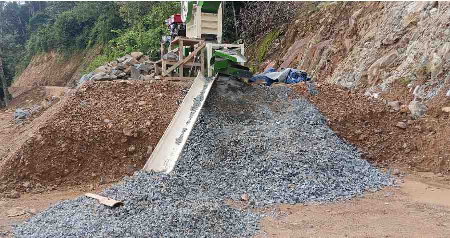 Masih dilokasi STA.0.355, menurut keterangan salah satu pekerja yang tidak mau menyebutkan namanya, saat dikonfirmasi terkait sudah berapa lama mesin Stone Crusher milik PT NKE memproduksi Split, mengatakan.