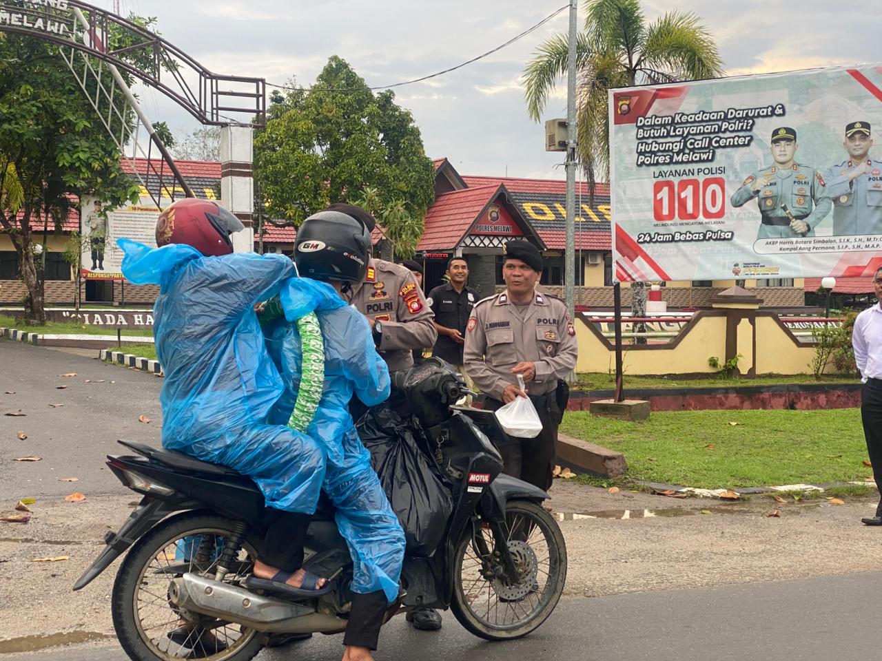 “Pembagian takjil dengan sasaran masyarakat pengguna jalan yang melintas di depan Markas Kepolisian Resor Melawi mengedepankan humanis senyum sapa dan salam serta menyampaikan pesan hati hati berkendaraan,” ujar Kasat Sabhara.