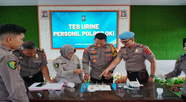 Kapolres OKI, Eko Rubiyanto, menegaskan bahwa pemeriksaan urine tersebut merupakan bentuk pengawasan internal yang wajib dilaksanakan secara menyeluruh dan berkelanjutan.