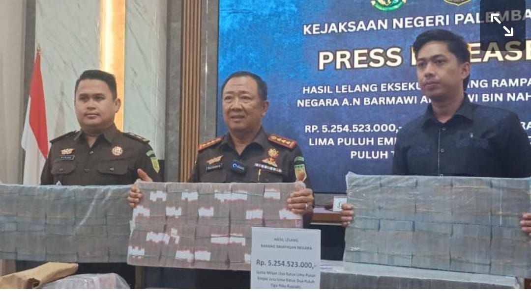 Kajari Palembang Hutamrin dalam konferensi pers, Kamis (25/9/2025), menyampaikan seluruh barang rampasan laku terjual dengan total nilai Rp5.254.523.000. “Dana ini langsung disetorkan ke kas negara sebagai **Penerimaan Negara Bukan Pajak (PNBP),” ujarnya.
