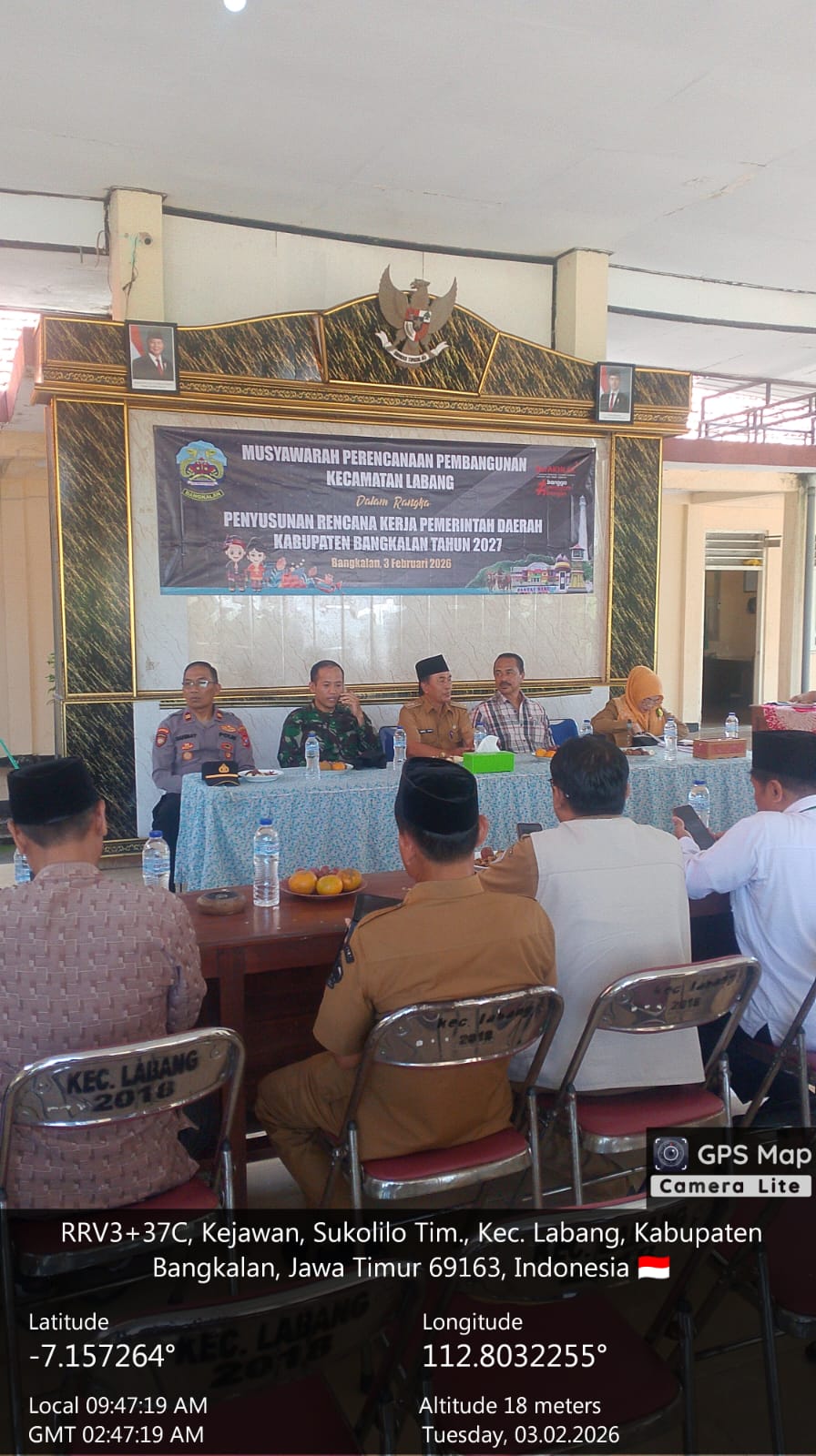 Bangkalan, Faktanews.id – Koramil 0829-07/Labang menghadiri kegiatan Musyawarah Perencanaan Pembangunan (Musrenbang) Kecamatan Labang dalam rangka penyusunan Rencana Kerja Pemerintah Daerah (RKPD) Kabupaten Bangkalan Tahun 2027. Kegiatan tersebut dilaksanakan pada Selasa, (3/2/26), bertempat di Pendopo Kecamatan Labang, Desa Sukolilo Timur, Kecamatan Labang, Kabupaten Bangkalan.
