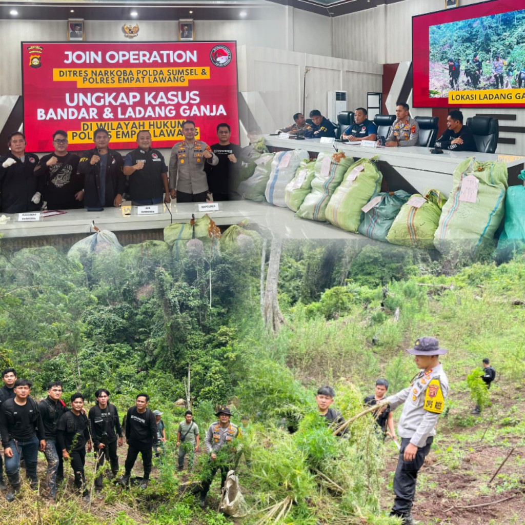 Operasi dipimpin langsung Direktur Reserse Narkoba Polda Sumsel Kombes Pol Yulian Perdana, S.I.K., bersama Kapolres Empat Lawang AKBP Abdul Aziz Septiadi, S.H., S.I.K., M.H. Pengungkapan ini merupakan hasil pengembangan penyelidikan intensif sejak Februari 2026 yang berhasil memetakan jaringan distribusi ganja lintas wilayah hingga Pulau Jawa.