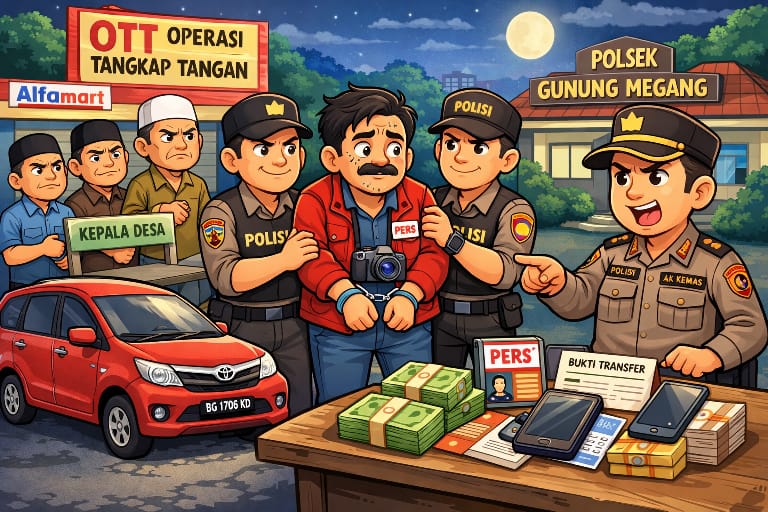 “Yang bersangkutan kami amankan atas dugaan pemerasan dan intimidasi terhadap para kepala desa. Barang bukti berupa bukti transfer dan rekaman percakapan ancaman telah kami amankan. Ini bukan kerja pers, tapi murni tindak pidana,” tegas Kapolsek.