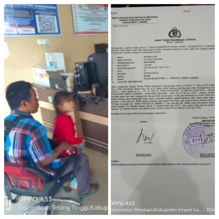 Pada hari itu juga orang tua korban begegas pergi ke klinik Zahira guna untuk berobat dan di pisum,dan di dampingi salah satu ongota Polsek pendopo,yang juga karena kesal orang tua korban mau melaporkan kejadian tersebut lalu angota Polsek menyarankan langsung melapor kejadian tersebut kepolres empat lawang ke bidang PPA.14/2/2026