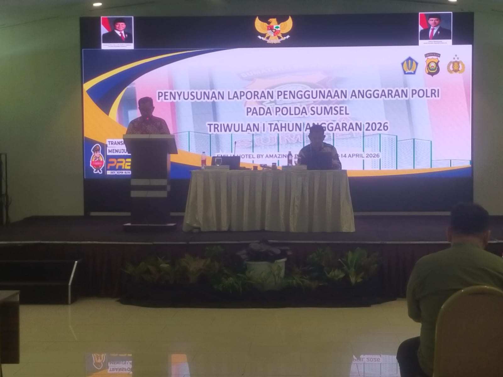 Kegiatan asistensi dan penyusunan laporan dilaksanakan di Emilia Hotel Palembang, Senin (13/4/2026) mulai pukul 09.00 WIB, dan diikuti oleh Kasubbag Renmin Satker Polda Sumsel, Kabagren Satwil jajaran, serta operator keuangan dari seluruh satuan kerja.