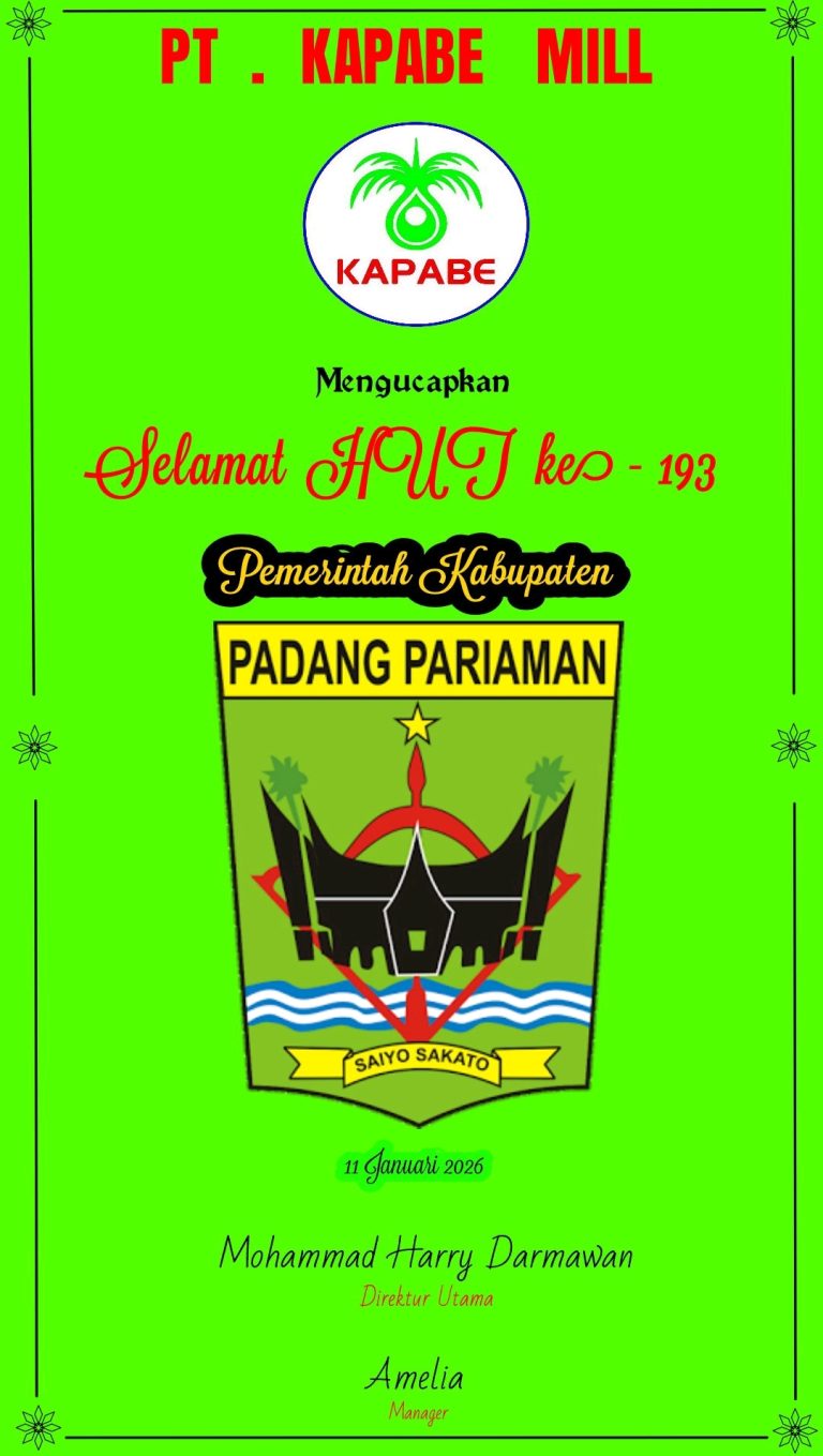 Home Uncategorized PT KAPABE MILL, Selamat HUT 194 Pemkab Padang Pariaman Uncategorized PT KAPABE MILL, Selamat HUT 194 Pemkab Padang PariamanDarwis AkbarJanuary 11, 2026 Related News Kantah Prabumulih dan PUPR Bahas Revisi RTRW Perjakon Kabupaten Tegal, Selamat Natal dan Tahun Baru Dinas PUPR Pemkot Tegal Selamat Natal dan Tahun Baru Hj Nurmala Sari SSTP MSi, Selamat Natal 2025 dan Tahun Baru 2026 Pj Sekda Muba, Selamat Natal 2025 dan Tahun Baru 2026 Hendy SH, Selamat Natal 2025 dan Tahun Baru 2026 Post Views: 26 CommentRead AlsoKantah Prabumulih dan PUPR Bahas Revisi RTRWPerjakon Kabupaten Tegal, Selamat Natal dan Tahun BaruDinas PUPR Pemkot Tegal Selamat Natal dan Tahun BaruHj Nurmala Sari SSTP MSi, Selamat Natal 2025 dan Tahun Baru 2026Pj Sekda Muba, Selamat Natal 2025 dan Tahun Baru 2026Hendy SH, Selamat Natal 2025 dan Tahun Baru 2026Recommendation for YouKantah Prabumulih dan PUPR Bahas Revisi RTRWPrabumulih, Beritafaktanews.id– Kantor Pertanahan (Kantah) Prabumulih menggelar kegiatan koordinasi pembahasan Revisi Rencana Tata Ruang Wilayah… Perjakon Kabupaten Tegal, Selamat Natal dan Tahun BaruRelated News Kantah Prabumulih dan PUPR Bahas Revisi RTRW PT KAPABE MILL, Selamat HUT 194… Dinas PUPR Pemkot Tegal Selamat Natal dan Tahun BaruRelated News Kantah Prabumulih dan PUPR Bahas Revisi RTRW PT KAPABE MILL, Selamat HUT 194… Hj Nurmala Sari SSTP MSi, Selamat Natal 2025 dan Tahun Baru 2026Related News Kantah Prabumulih dan PUPR Bahas Revisi RTRW PT KAPABE MILL, Selamat HUT 194… Pj Sekda Muba, Selamat Natal 2025 dan Tahun Baru 2026Related News Kantah Prabumulih dan PUPR Bahas Revisi RTRW PT KAPABE MILL, Selamat HUT 194… Hendy SH, Selamat Natal 2025 dan Tahun Baru 2026Related News Kantah Prabumulih dan PUPR Bahas Revisi RTRW PT KAPABE MILL, Selamat HUT 194…