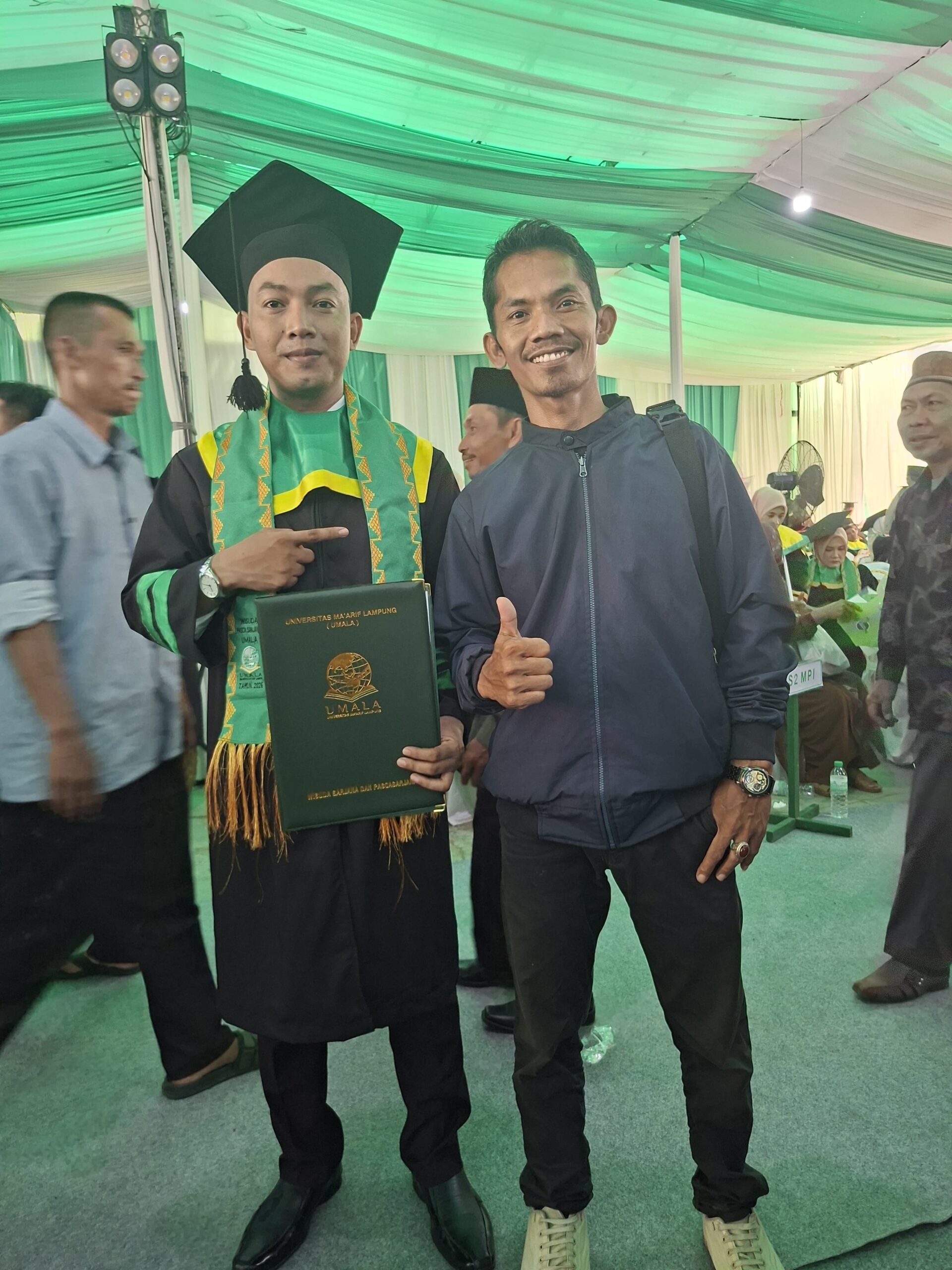 “Saya mengucapkan syukur (Alhamdulillah) kepada ALLAH SWT, dan terima kasih kepada keluarga, pihak Kampus, baik dosen dan seluruh jajarannya, sahabat, serta seluruh pihak, baik pemerintah maupun swasta yang telah memberikan doa, dukungan, dan motivasi. Tanpa mereka, saya tidak akan sampai pada titik ini,” ujarnya di Kampus UNIVERSITAS MA’ARIF LAMPUNG (UMALA) jalan RA. Kartini No. 28, Kelurahan Purwosari, Kecamatan Metro Utara, Kota Metro, Lampung disela-sela melaksanakan wisuda pada Selasa, (28/04/2026).