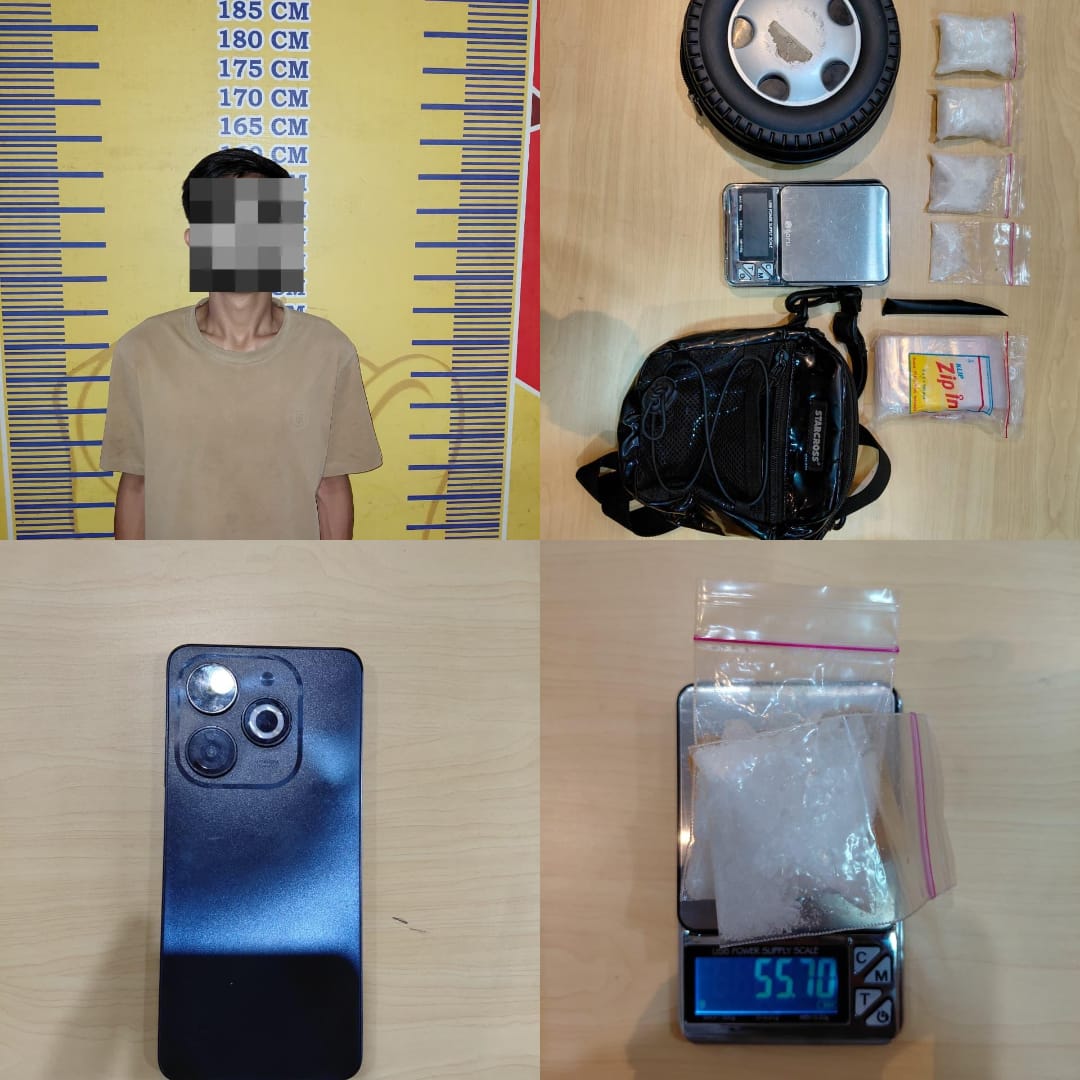 Dengan demikian, total barang bukti yang berhasil diamankan dari dua lokasi mencapai 55,77 gram sabu, terdiri dari empat paket sabu siap edar, timbangan digital, plastik klip, dan satu unit handphone.