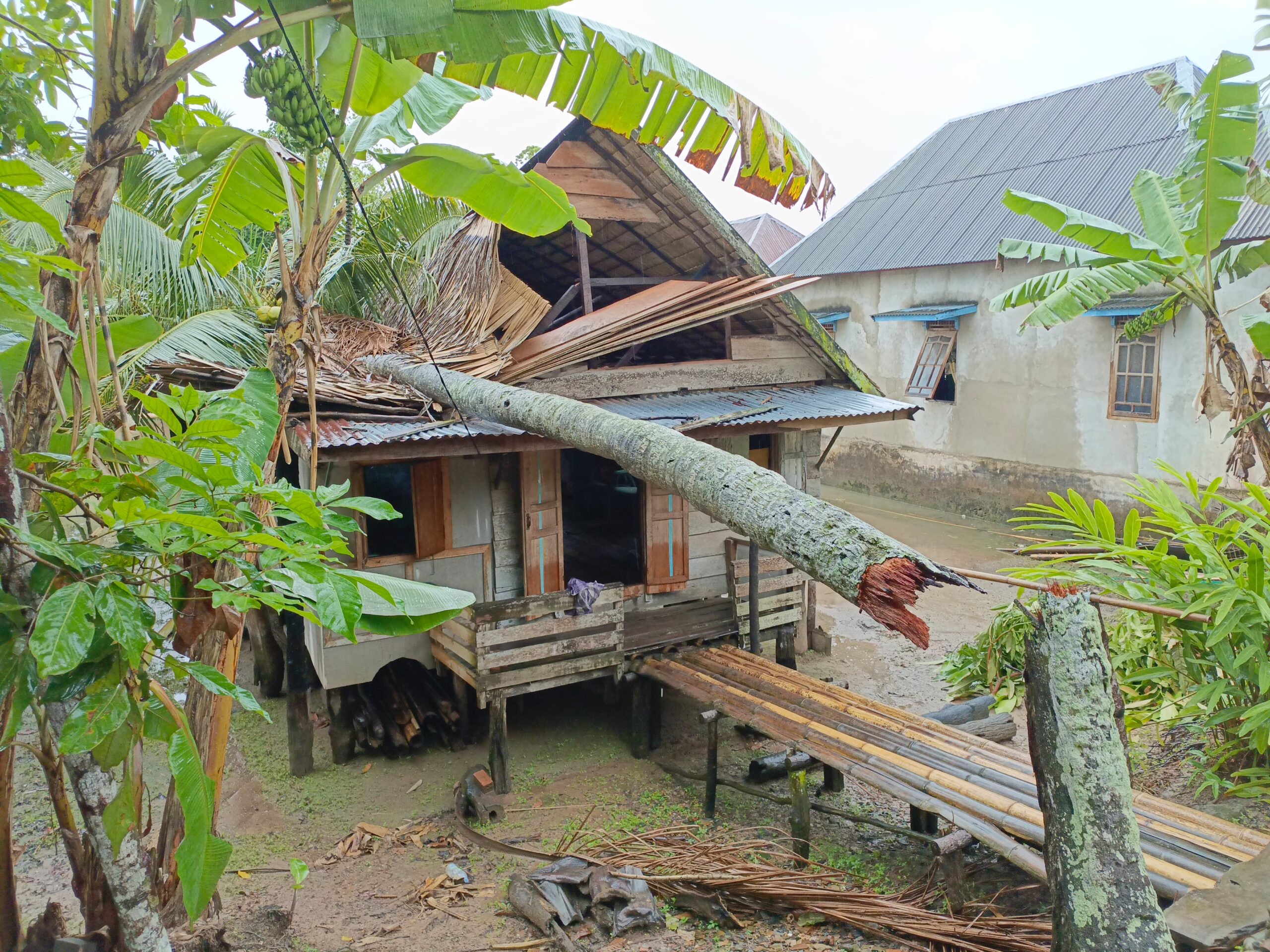 Aksi kemanusiaan ini menyasar seorang warga lanjut usia bernama Nuridah (65), yang rumahnya mengalami kerusakan berat akibat tertimpa pohon kelapa tumbang saat terjadi angin kencang. Kerusakan tersebut menyebabkan bagian atap rumah roboh dan tidak dapat dihuni secara layak.